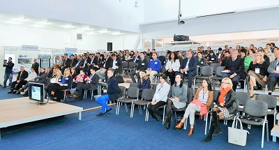 After a series of presentations by Romanian and international experts, it was time for the audience to meet the finalists of the Regional Innovation Competition, organized with the support of the Enterprise Europe Network. These included a portable environment monitor, a platform for ultrafast business software application development, an automated projection system, a hybrid photocatalytic-photovoltaic system for converting solar energy to electricity, etc.